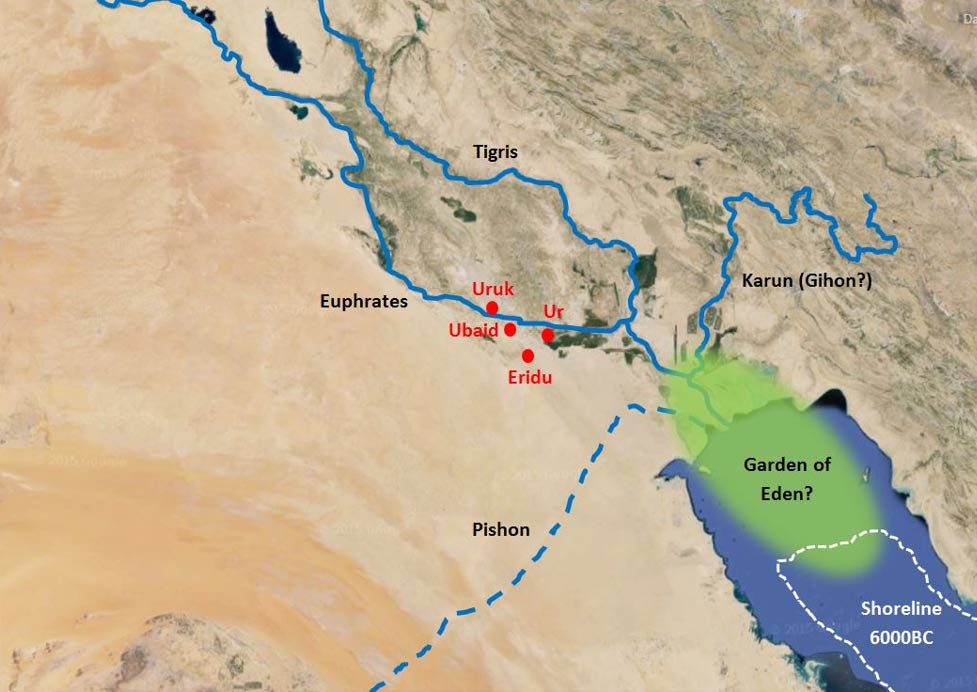 As for the Gihon River that “flowed around the whole land of Cush” (verse 13), I would equate that with the Karun River, flowing out of Iran, through the ancient land of the Elamites.