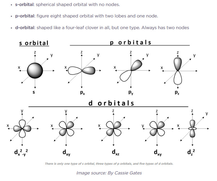 Nope. It turns out that no matter how powerful or precise our measuring equipment becomes, it will never be possible to simultaneously measure both the position and speed of a particle. One of God’s physical laws, now called the Heisenberg Uncertainty Principle, after German physicist Werner Heisenberg, utterly precludes that possibility! The best we can possibly do is consider a probability distribution to indicate a range of locations that it might be. The solid shapes in the schematic below represent the most likely position at which to find a given electron.